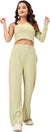Exude confidence and style with this chic two-piece outfit. The cropped top features a sleeveless, off-shoulder design that flaunts your shoulders and dcolletage. Crafted from a soft, knitted fabric, it offers a snug yet comfortable fit. The wide-leg trousers are equally alluring, with a high-waisted silhouette that flatters your figure. Made from the same lightweight material, these flowy pants provide ample coverage while allowing for effortless movement. This ensemble's understated beige hue lends a timeless elegance, making it suitable for various occasions. Pair it with strappy heels and statement jewellery for a night out or dress it down with sandals for a casual daytime look. With its versatility and trendy aesthetic, this co-ord set is a must-have addition to your wardrobe.